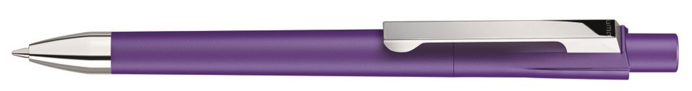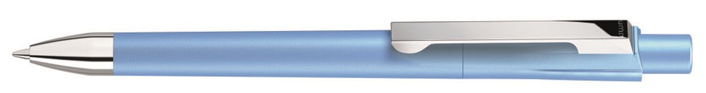 Druckkugelschreiber mit gedeckt mattem Gehäuse. Schwere Metallspitze und Metallclip glanzverchromt.