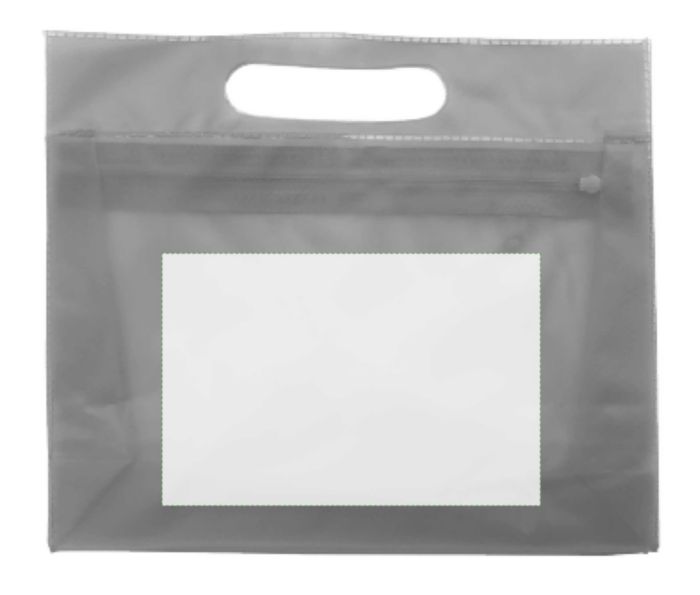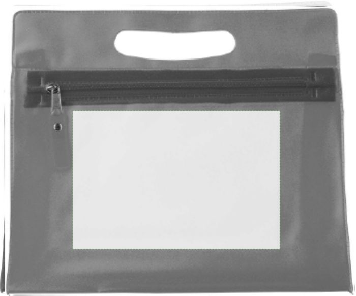 Kulturtasche aus PVC, transparent gefrostet, mit Reißverschluss und Griffaussparung für eine angenehmes Tragen.