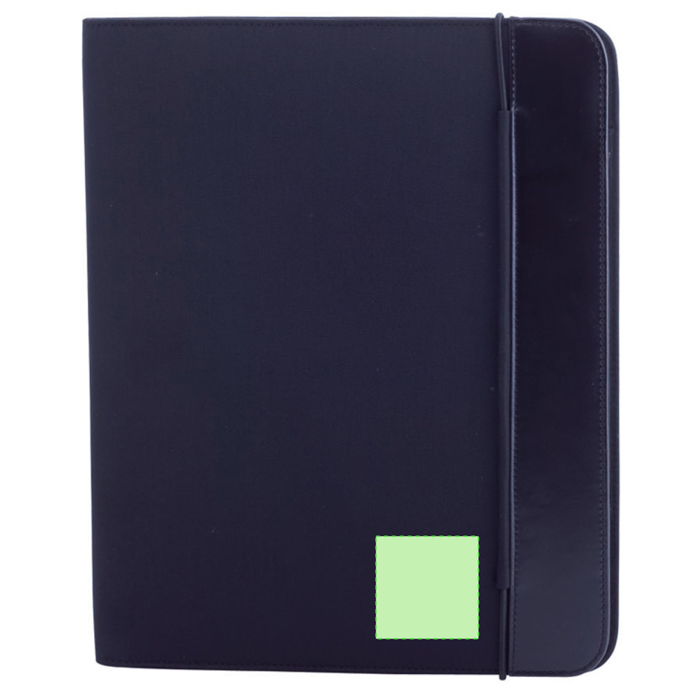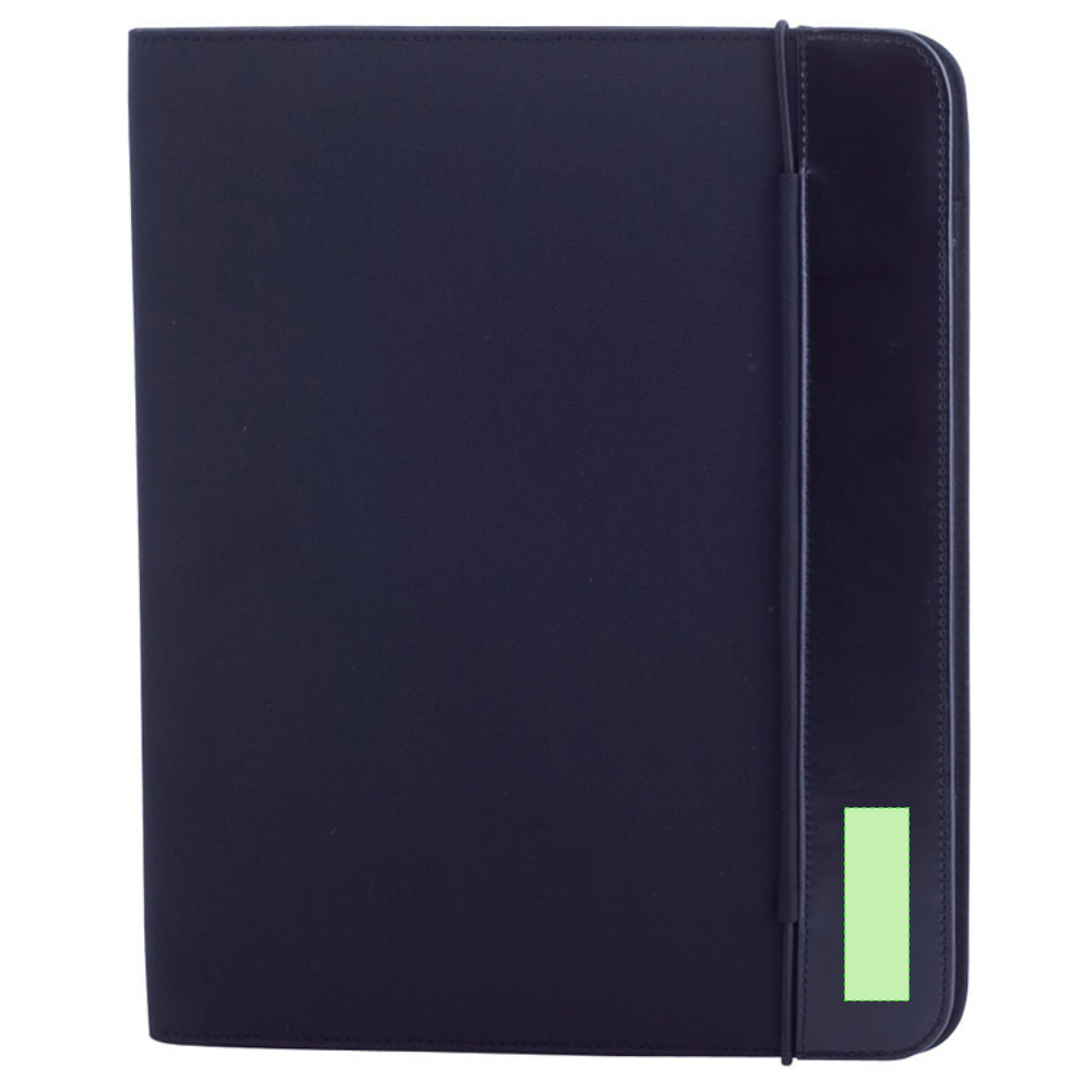 Mappe mit zweifarbigem Design in kräftigen Farben aus weicher Mikrofaser mit Gummibandverschluss. Farblich passendes Interieur mit Notizblock mit 20 Blättern, Tasche mit Klappe sowie Kartenfächer und Stifthalter.