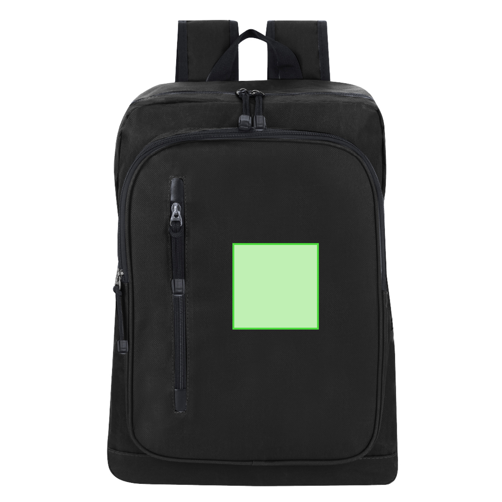 Robuster Rucksack aus 600D Polyester mit Reißverschluss und Fronttaschen. In schlichten Farben, mit gepolstertem Rückenpanel und Schultergurten sowie gepolstertem Innenfach für Laptop von bis zu 15 Zoll und Zugbändern am Zipper für einfaches Öffnen.