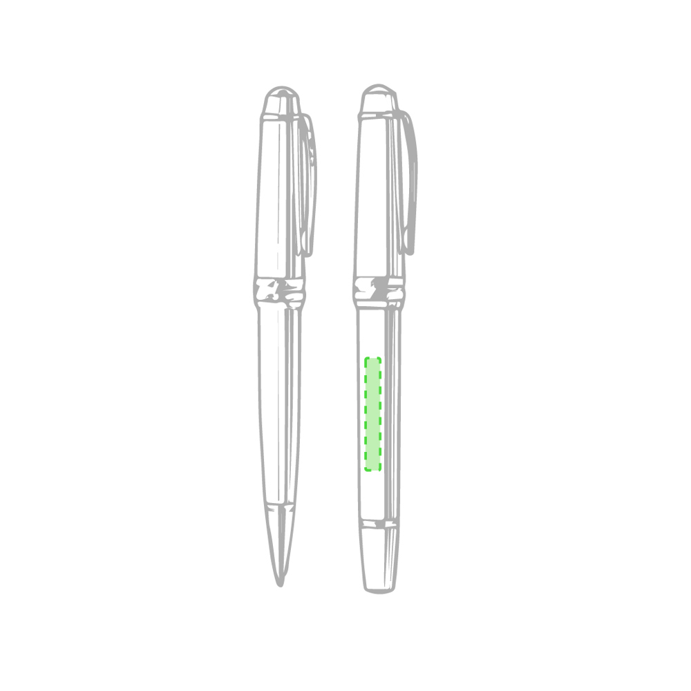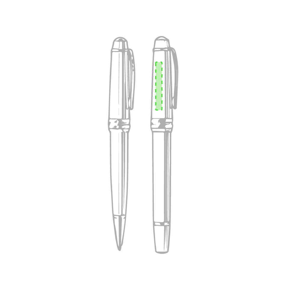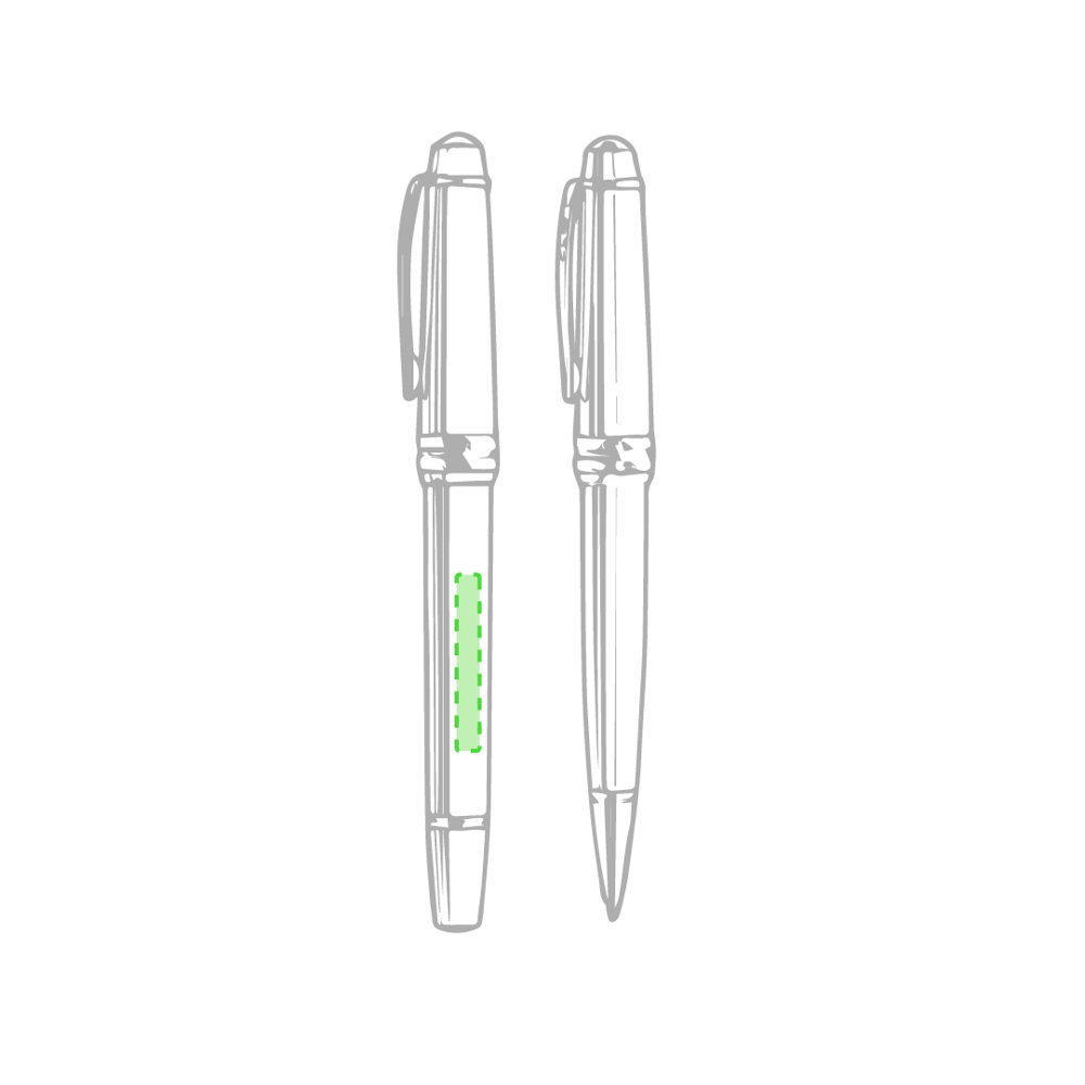 Erleben Sie Eleganz pur: Das Set Bailey Light vereint zeitlose Schönheit mit Funktionalität. Berühren Sie die sanfte Kombination aus glänzendem Harz und Chrom, präsentiert in einem edlen Etui. Ein perfektes Geschenk, das Eindruck hinterlässt.