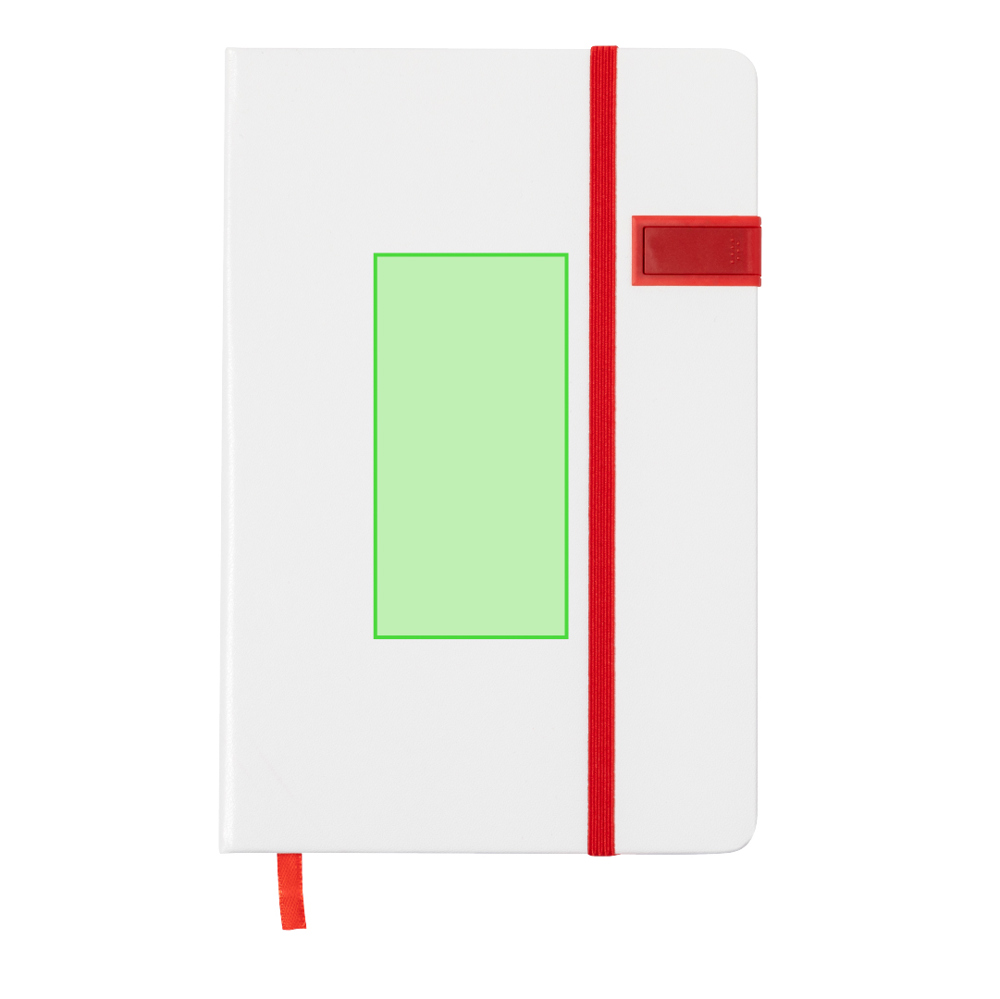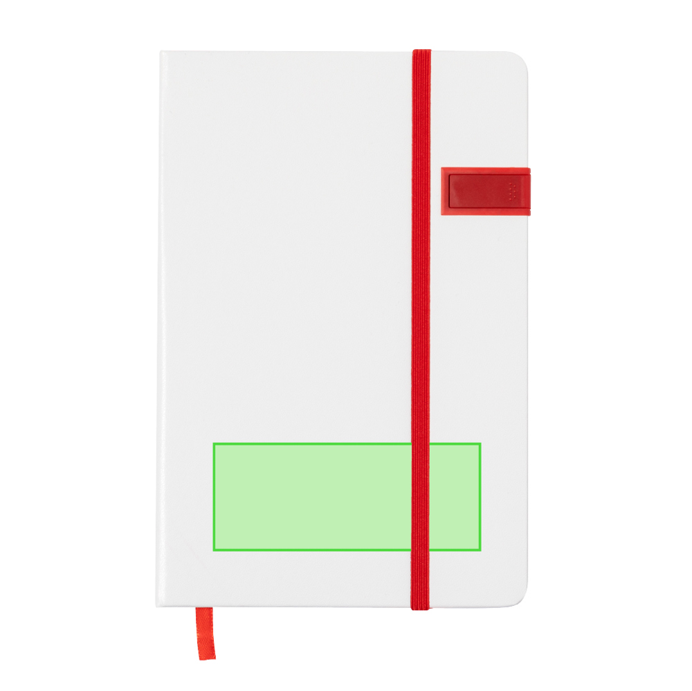 Notizblock mit coolem Design in Weiß. Mit im Cover integriertem USB-Speicher von 16 GB, Gummibandverschluss und Lesezeichenband in passender Farbe. Mit 100 linierten Blättern. Erhältlich in verschiedenen lebendigen Farben.